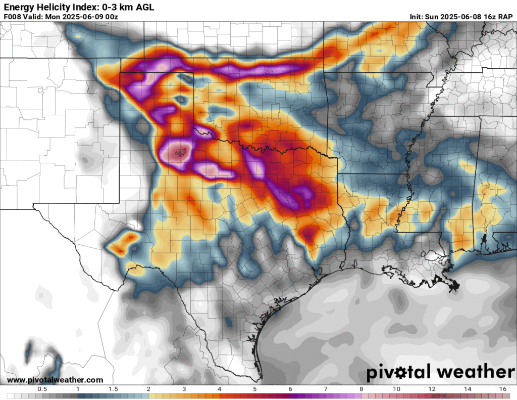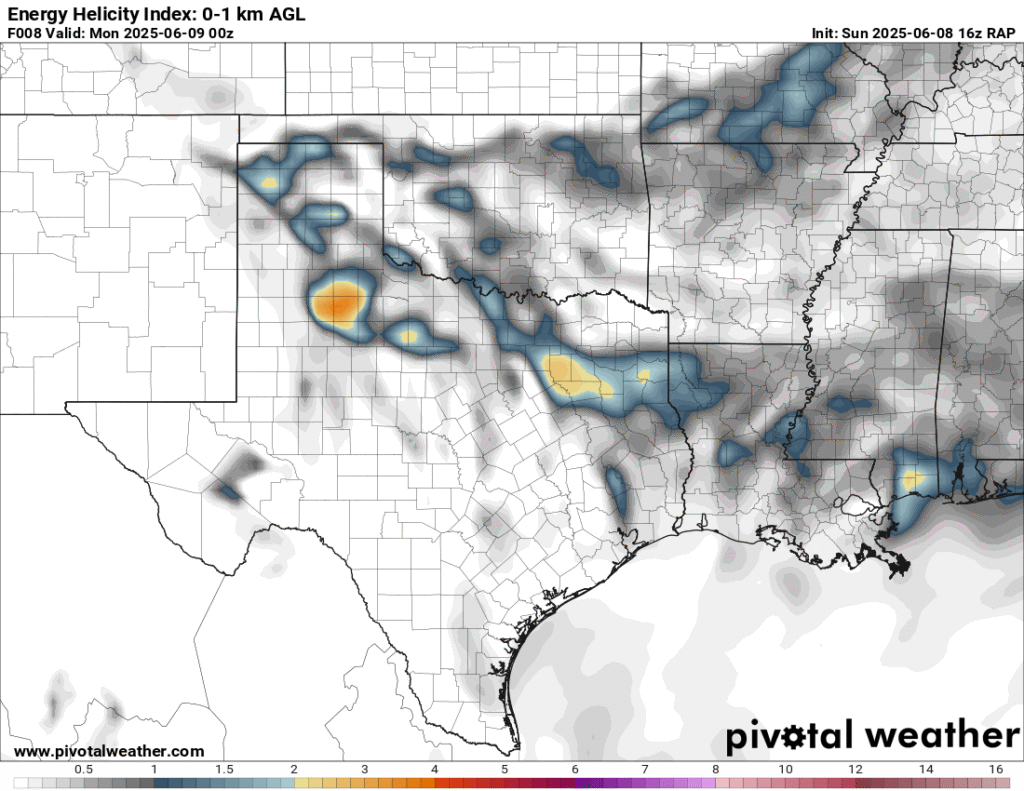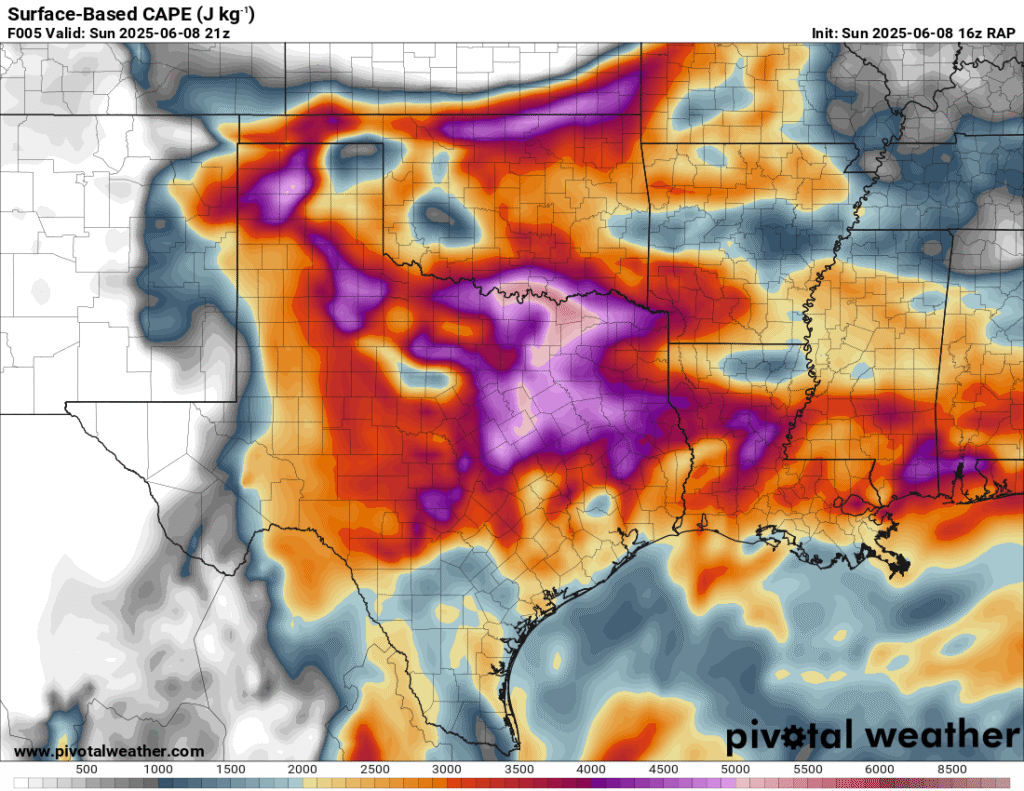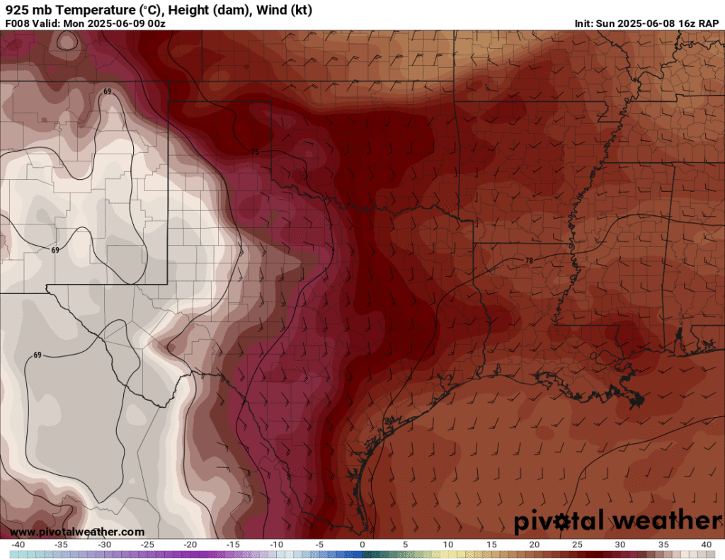 A very unstable atmosphere in place over the Texas panhandle with supercell shear. As it’s June, temperatures are a little high with RAP showing low 90 degree surface temps on the south side of the boundary with 70 degree dewpoints right up against the caprock.