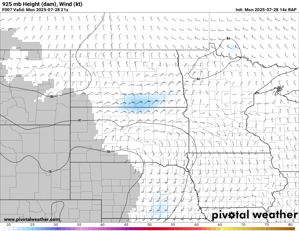 Between visiting the National Monument and work obligations, I became distracted. When I started moving west, the idea was to go to the Huron area or a little further west and/or north. Convective Initiation further southwest put me out of position big time. To compound the issue, I headed west out of Pipestone and continued through Madison and then tried to go through Salem. Road construction including a 15 minute wait for a pilot car and another long detour around Salem and back to I-90 cost me a lot of time.