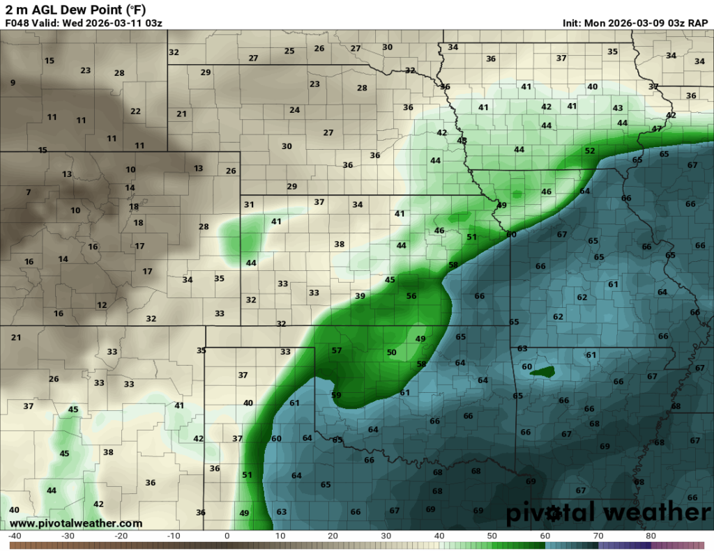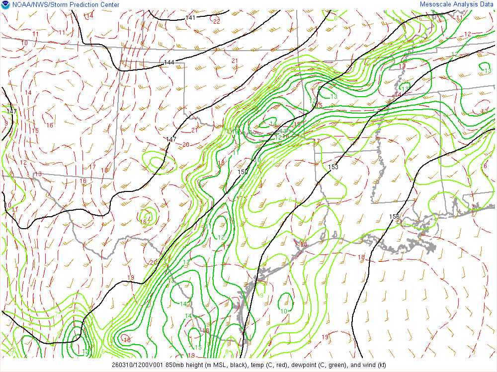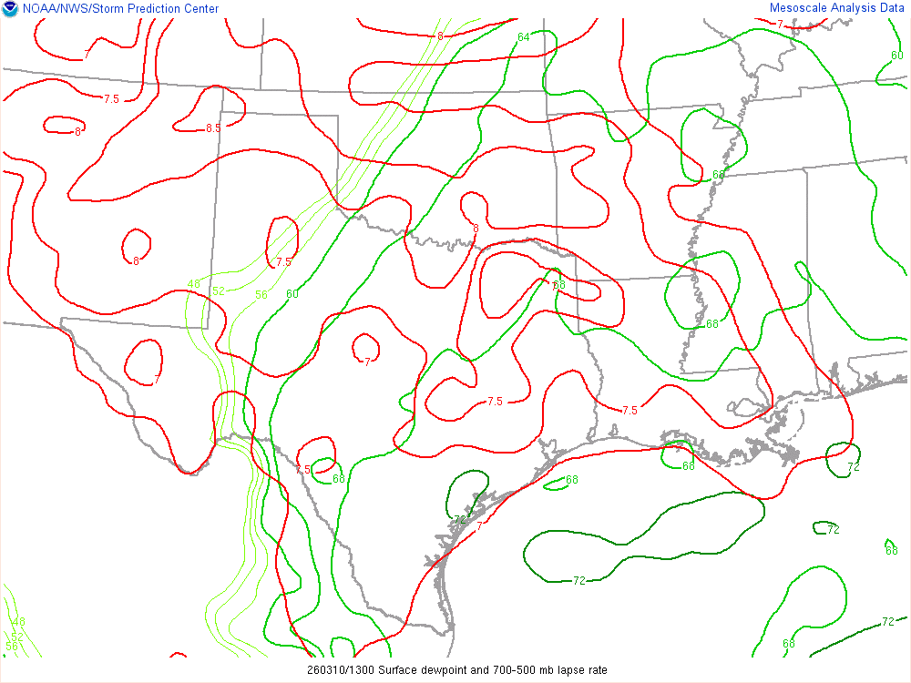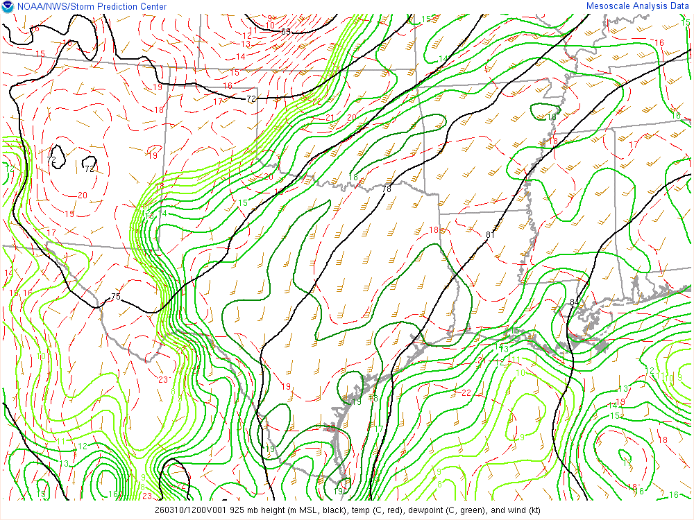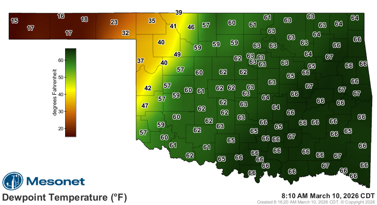 Moisture was very high for March. Dewpoints in the mid 60s were in place at 8am across the eastern 1/2 of Oklahoma.