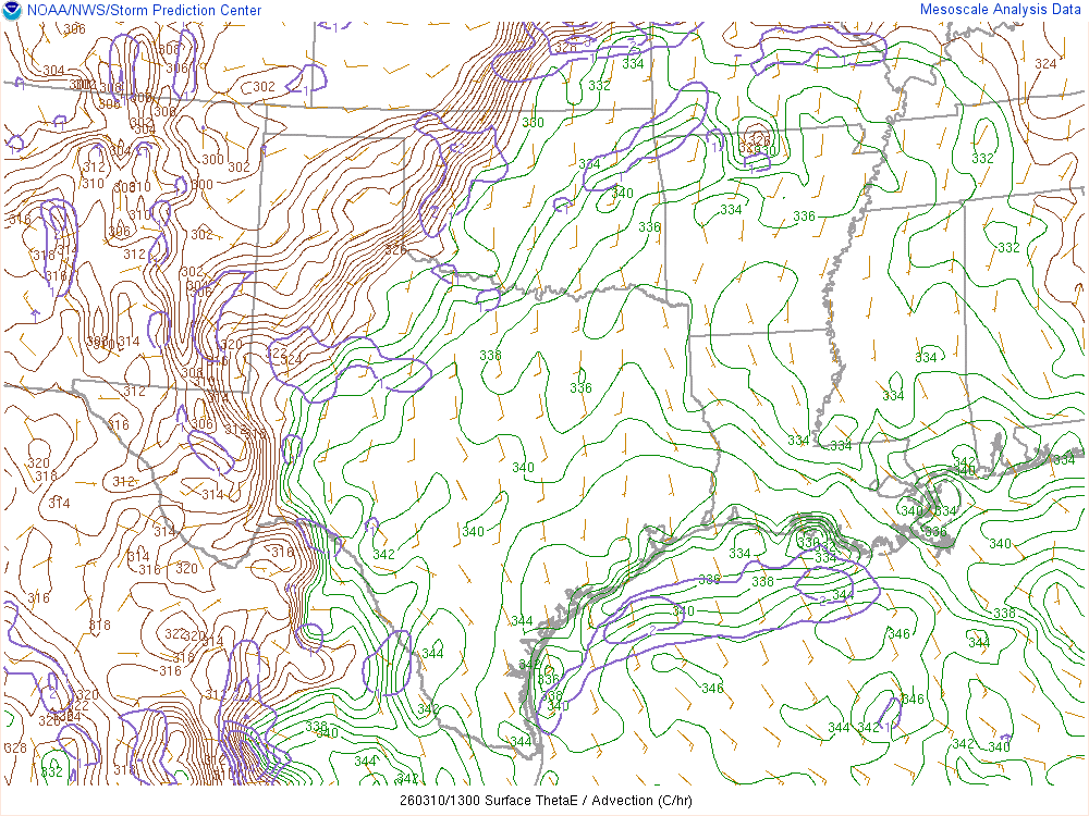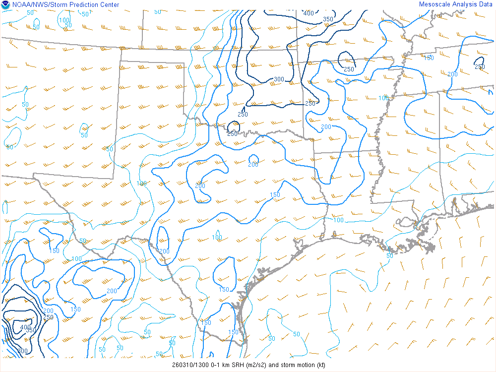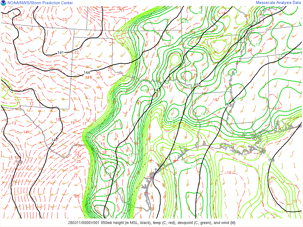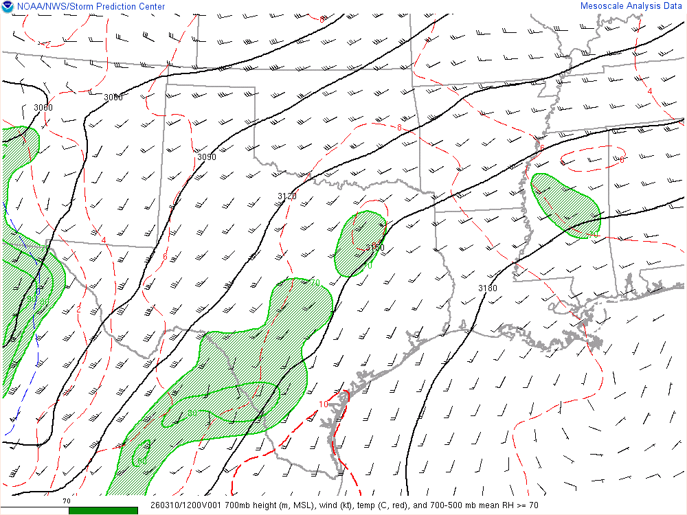 Moisture was very high for March. Dewpoints in the mid 60s were in place at 8am across the eastern 1/2 of Oklahoma.