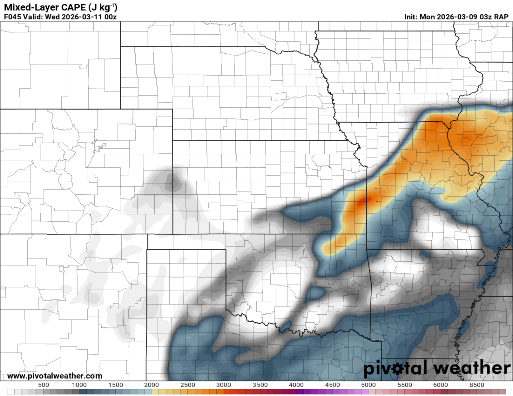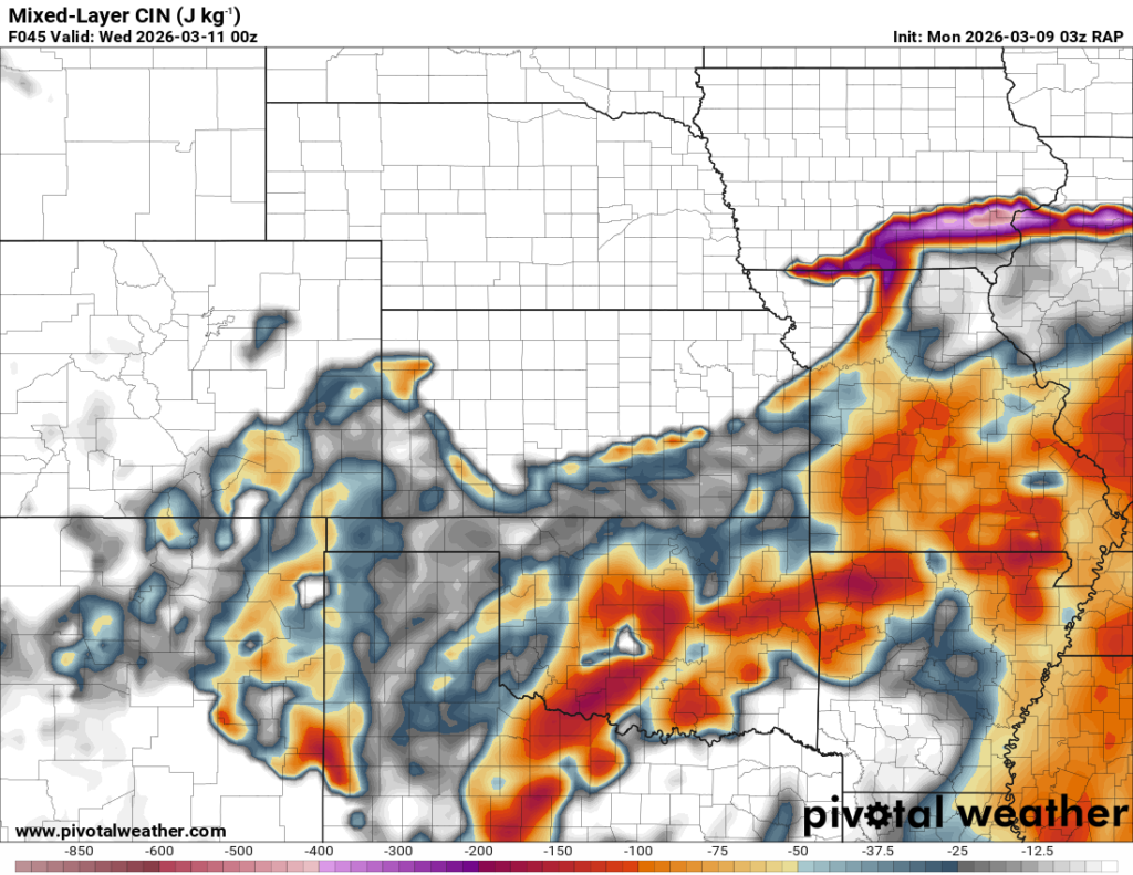 Running through the RAP, it had some weird chunk out of moisture/instability in Central Oklahoma. It was assuming there would be convection ongoing that would clear the warm sector. If that’s the case, this would be more in Eastern Oklahoma.