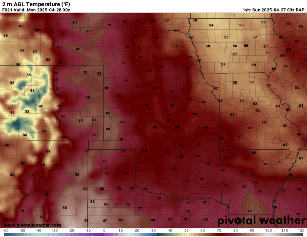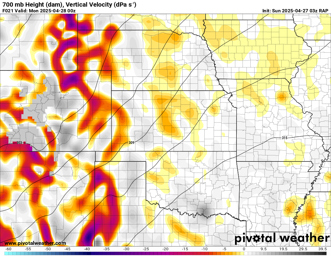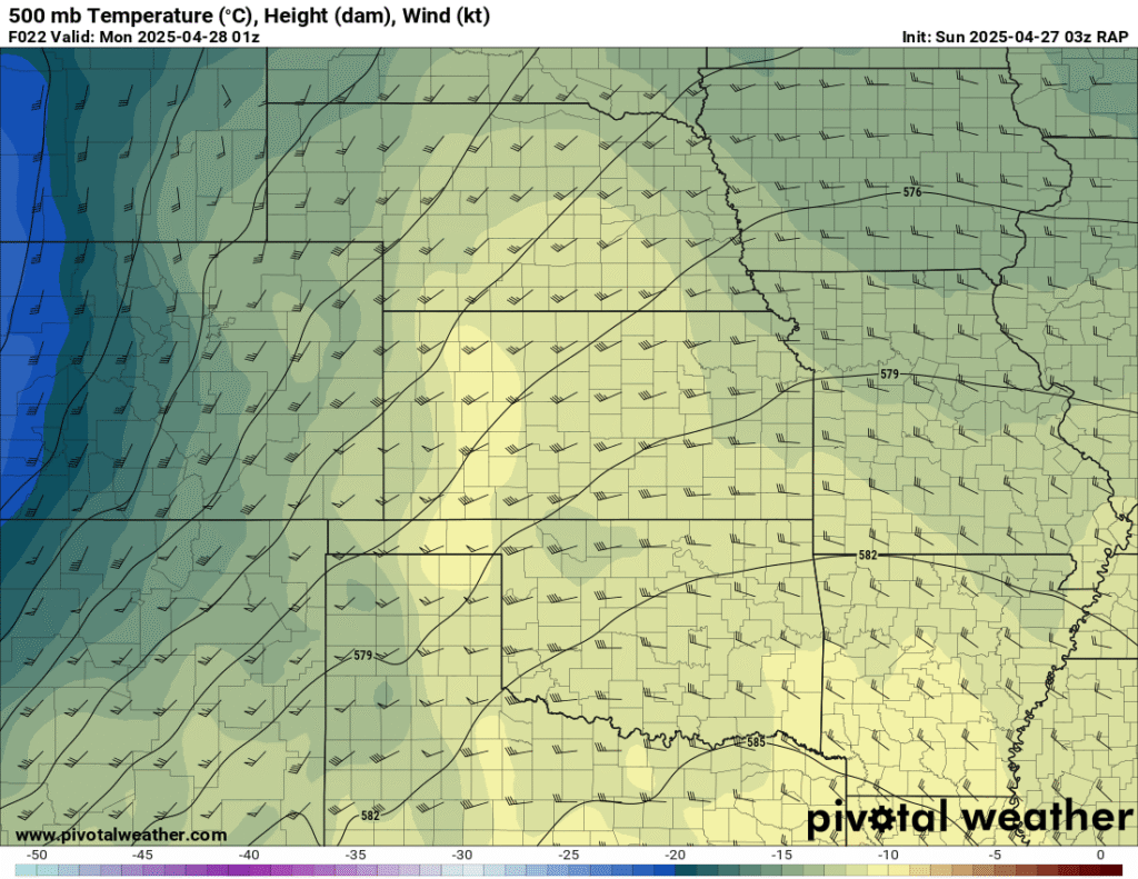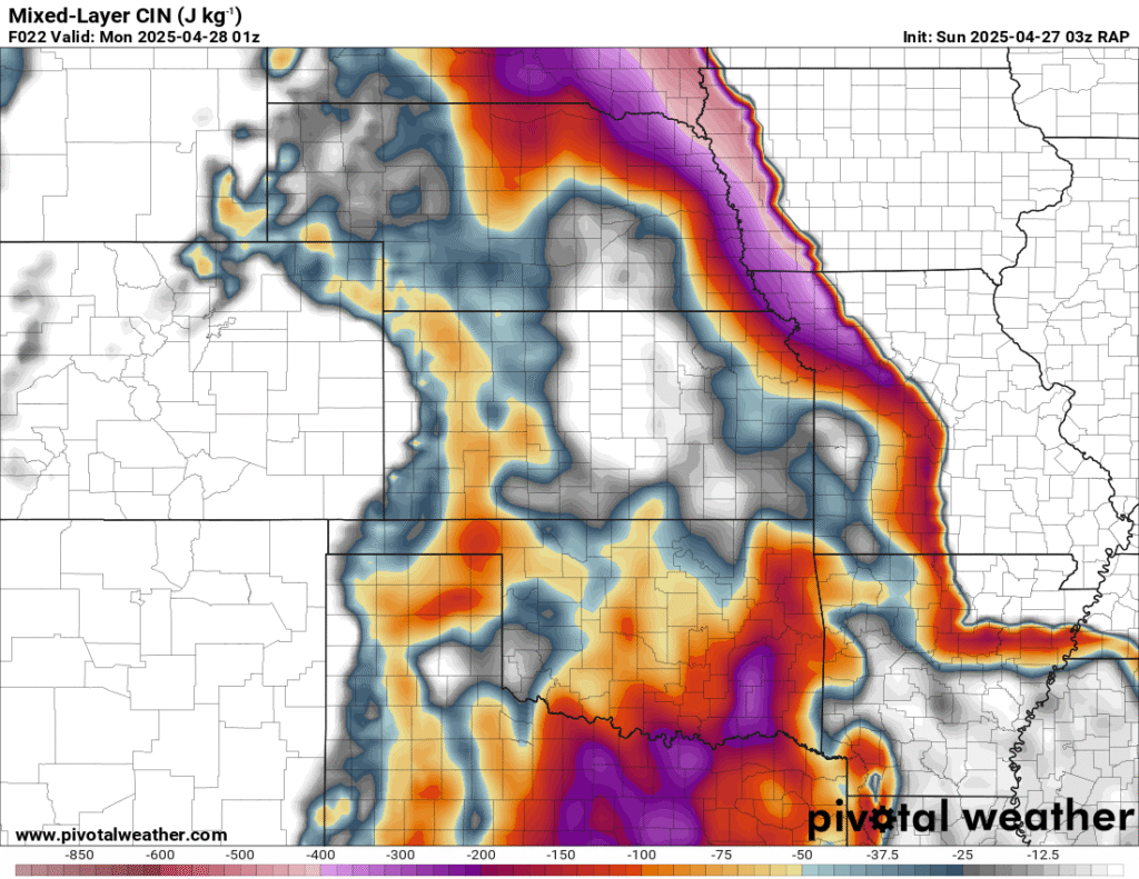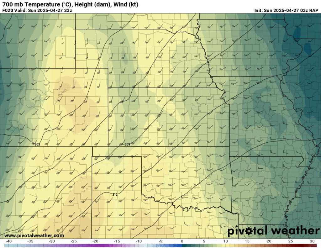 I was specifically impressed with temperatures at 700mb in the RAP runs, showing an area along the dryline in Western Kansas and Nebraska that would be sufficiently cool for convective initiation, or so I thought.