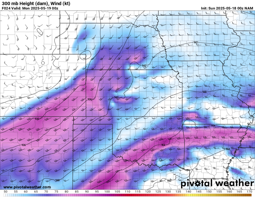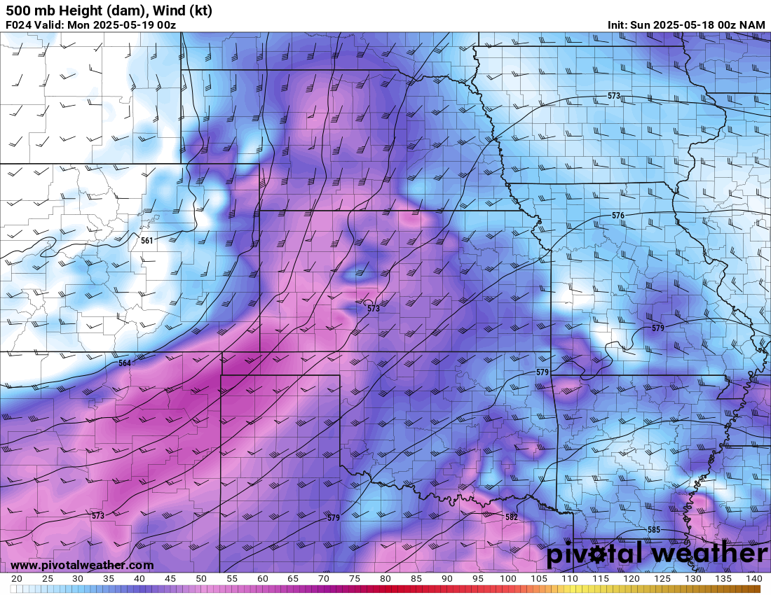 A very strong ski jump jet would slap into Oklahoma for the 17th, 18th and 19th. The 18th and 19th looked to be the better days, with excellent trough geometry.