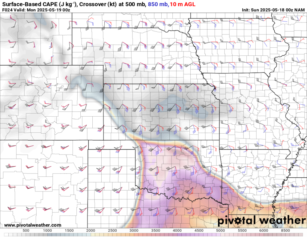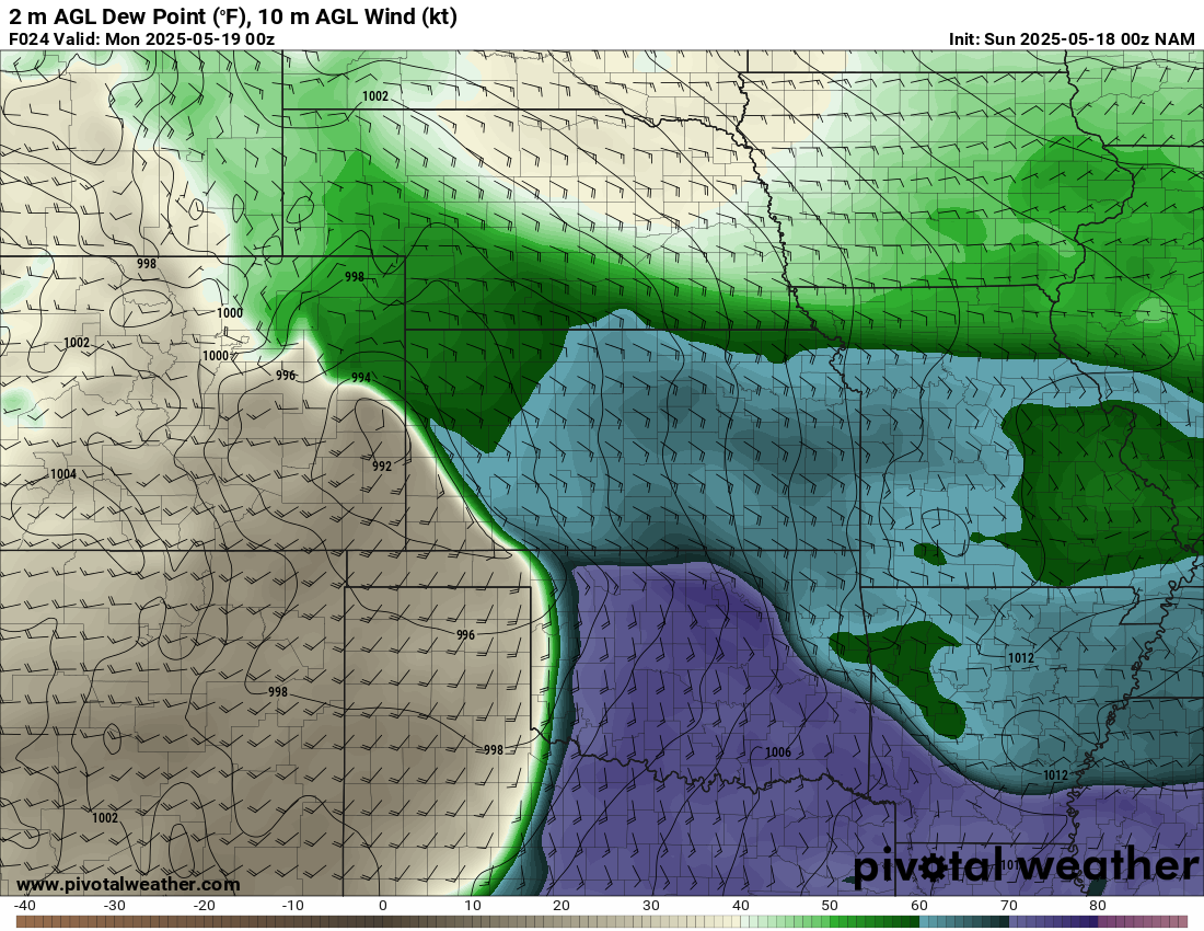 00Z NAM 20250518 / Evening of May 17, 2025 – Forecast Hour 24