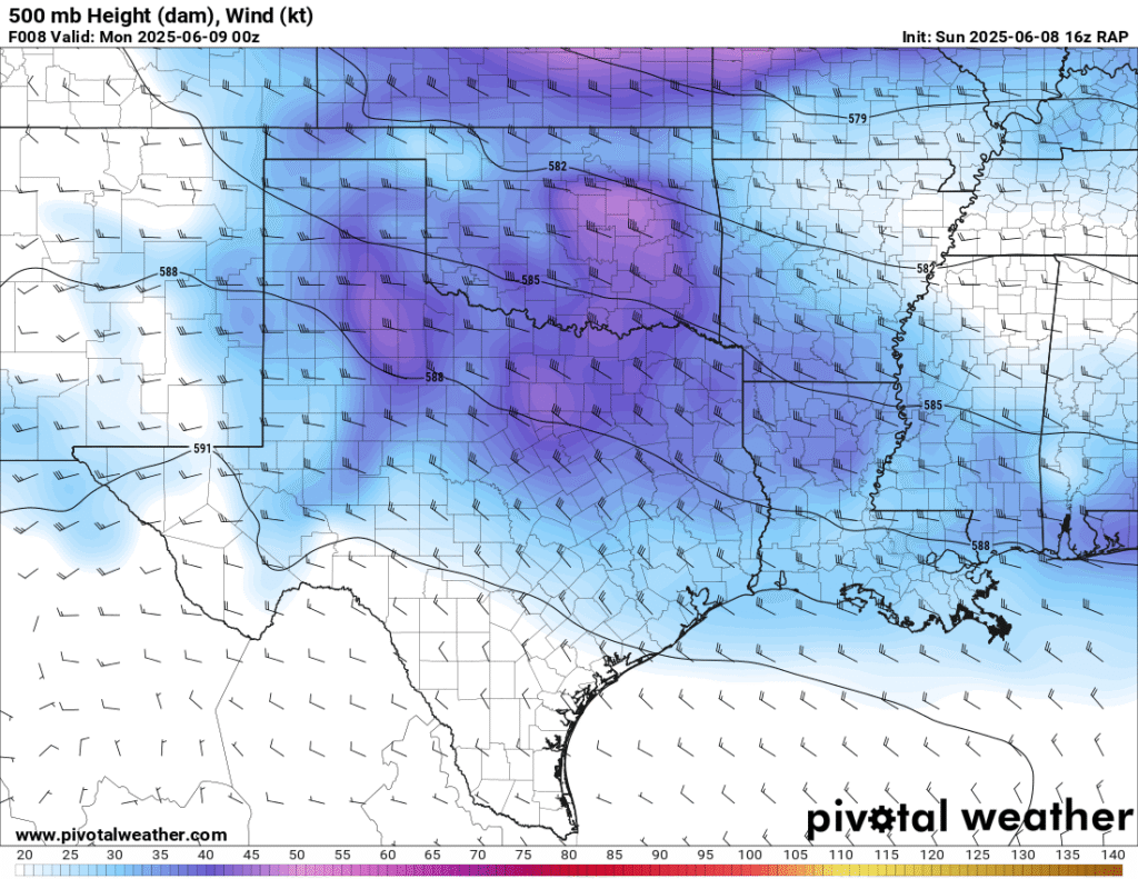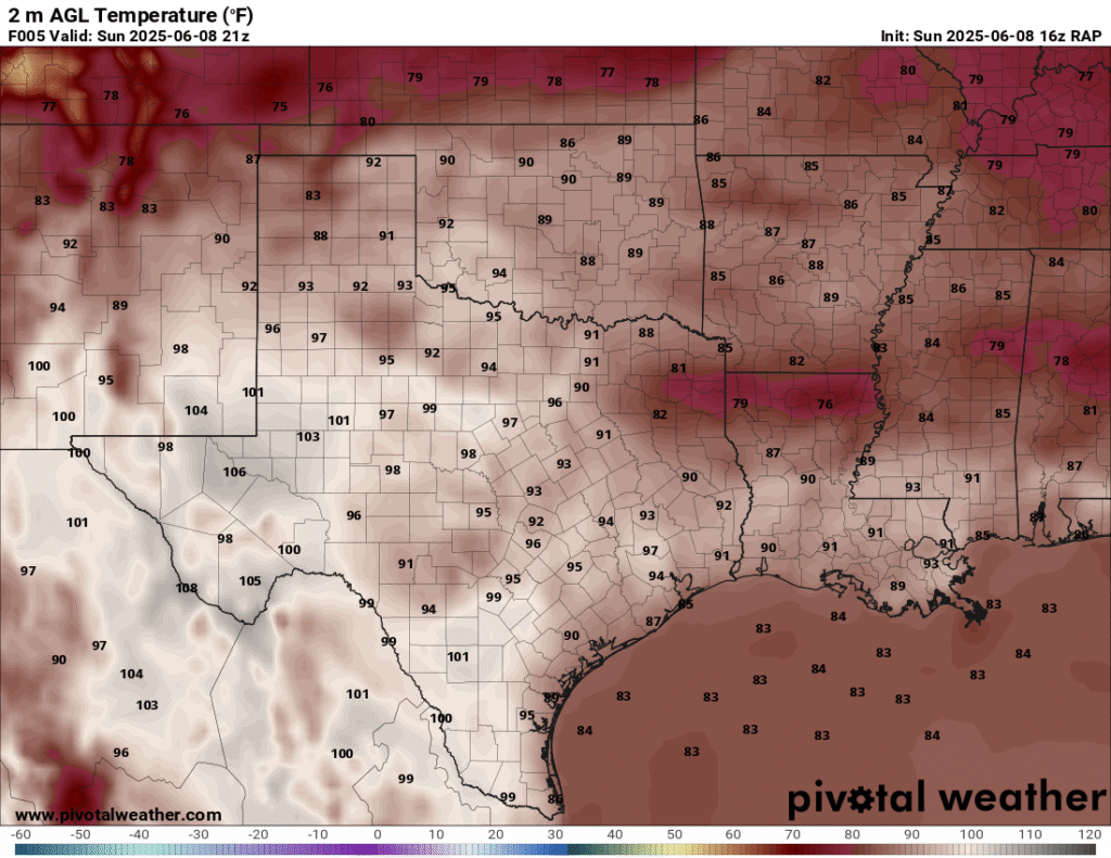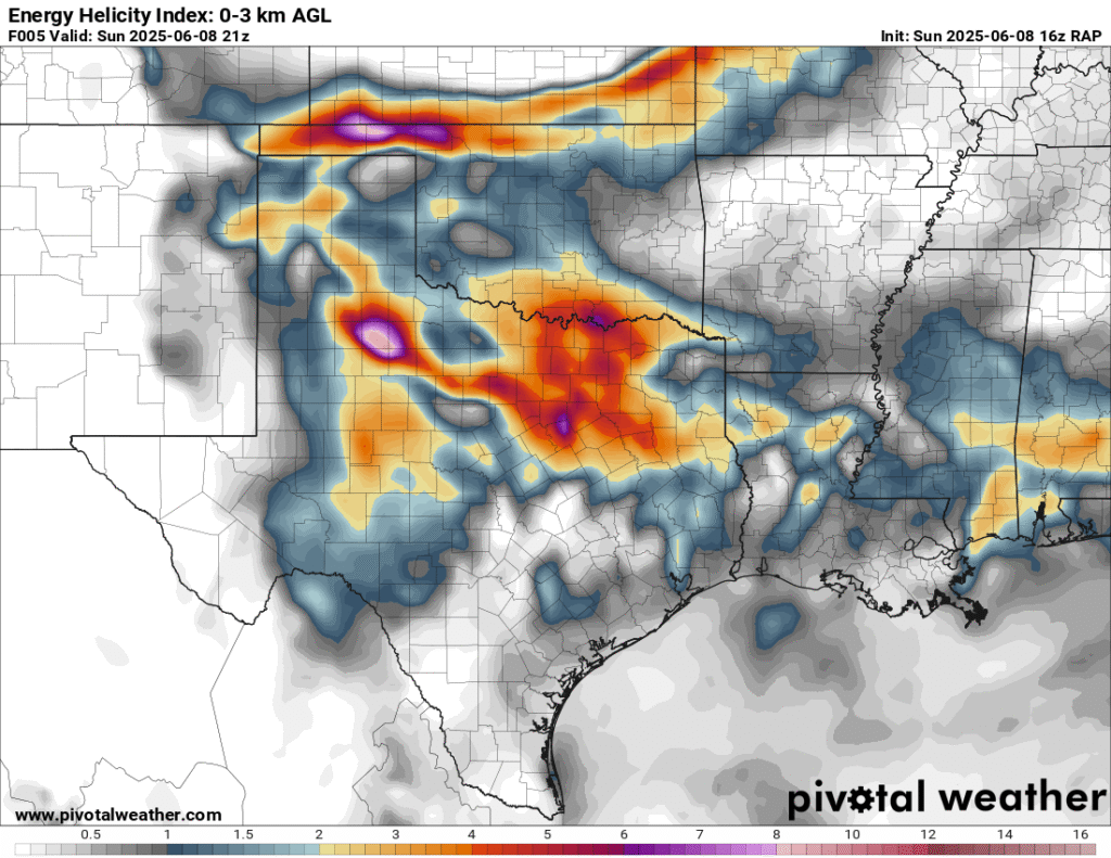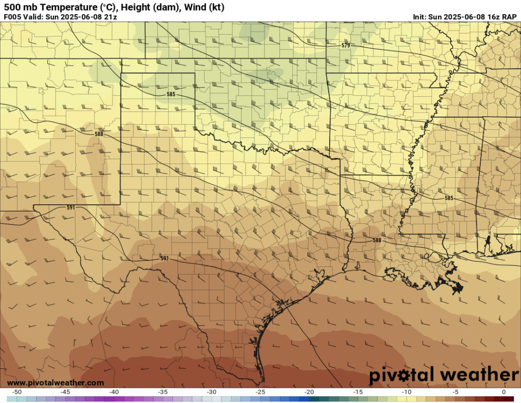 A very unstable atmosphere in place over the Texas panhandle with supercell shear. As it’s June, temperatures are a little high with RAP showing low 90 degree surface temps on the south side of the boundary with 70 degree dewpoints right up against the caprock.
