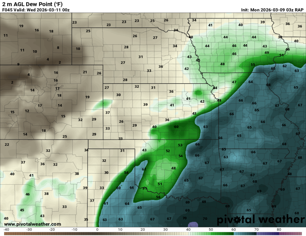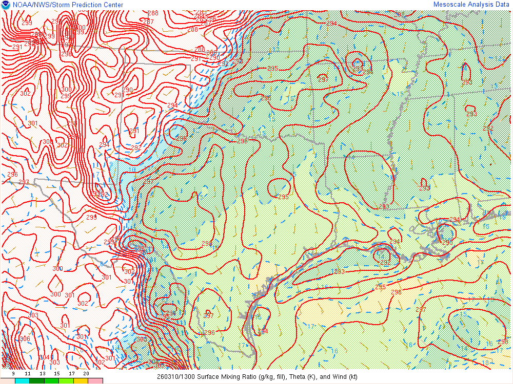 Moisture was very high for March. Dewpoints in the mid 60s were in place at 8am across the eastern 1/2 of Oklahoma.